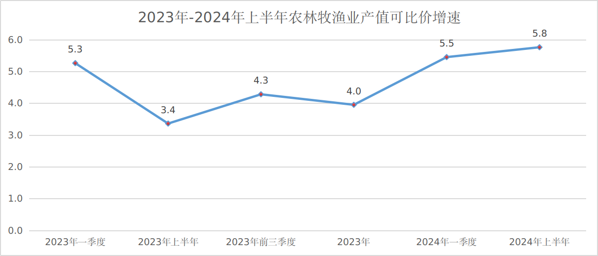 上半年,全市农林牧渔业总产值完成212.5亿元,比上年增长5.8%,总量位居全省第一,增速位居全省第二。