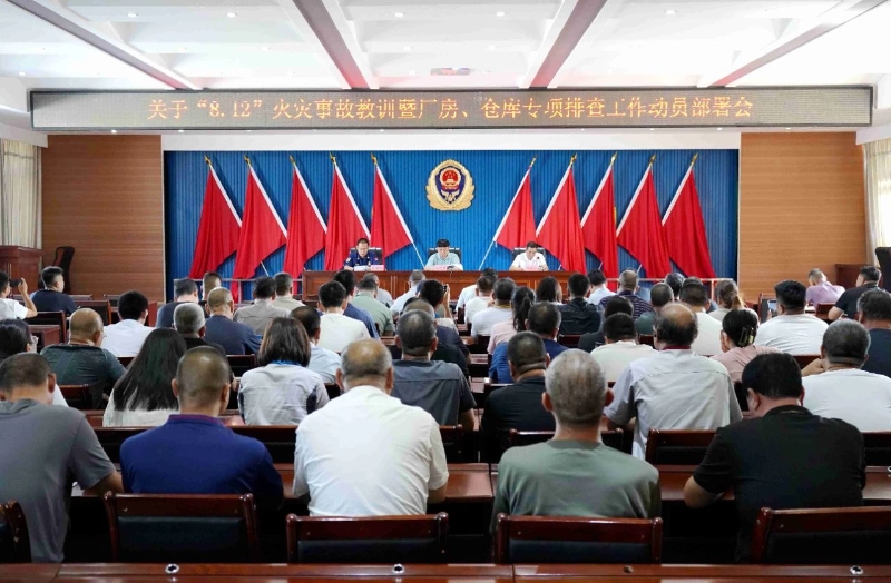 会上,参会人员观看了警示教育案例视频,运城经济技术开发区消防救援大队大队长宣读《关于吸取“8.12”火灾事故教训开展厂房、仓库专项排查工作的通知》并对排查要点进行培训。