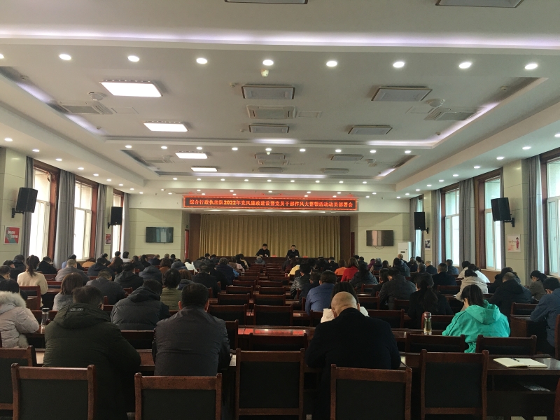 会议强调,要把开展“作风大整顿”作为一项重要的政治任务,紧抓在手、持续用力,切实以作风整顿新成效,推动工作大落实、发展大提速;要将“责任”紧抓在手、贯穿始终。坚持把抓好“作风大整顿”作为今年全面从严治党的重要内容,坚持严的主基调,细化落实举措,克服“上热中温下冷”现象,在全队形成齐抓共管格局,不断掀起作风整顿“新热潮”;要将“学习”紧抓在手、贯穿始终。认真学习贯彻习近平总书记关于加强作风建设的重要论述,引导广大党员干部充分认识开展作风大整顿的重要政治意义,立足岗位锤炼作风,全面提升执行能力,以实际行动推动各项决策部署在执法队落地见效;要将“整改”紧抓在手、贯穿始终。坚持立行立改、即知即改,切实打通狠抓落实的“最后一公里”。重点对照5个方面30条问题,认真查找不足,深挖思想根源,建立整改清单,明确整改任务、整改措施、整改时限,推动所有问题清仓见底,彻底整改到位;要将“惠民”紧抓在手、贯穿始终。推动“我为群众办实事”实践活动常态化,持续优化营商环境,实施包容审慎监管,本着处罚与教育相结合的原则,在严格依法履职基础上,对涉嫌违法的事项认真调查核实,精准裁量处理,对免于处罚的违法行为依法进行教育、警示,进一步优化营商环境,让监管执法既有力度又有温度;要将“立制”紧抓在手、贯穿始终。坚持把制度建设作为根本,认真总结运用作风大整顿的成功经验做法,坚持“立改废”并举,全面查找问题背后的制度缺陷,把该完善的体制机制完善好,该堵塞的漏洞堵塞好。同时,加强对制度执行的监督,推动各项制度落实落地,以制度巩固拓展工作成效。