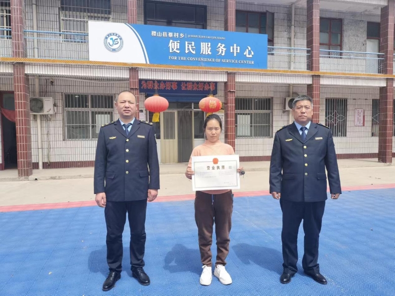 稷山县市场监管局蔡村所监管人员深入农村,面对面送政策、解难题,帮助农户办理营业执照,并送照上门,获得经营户的高度赞赏。