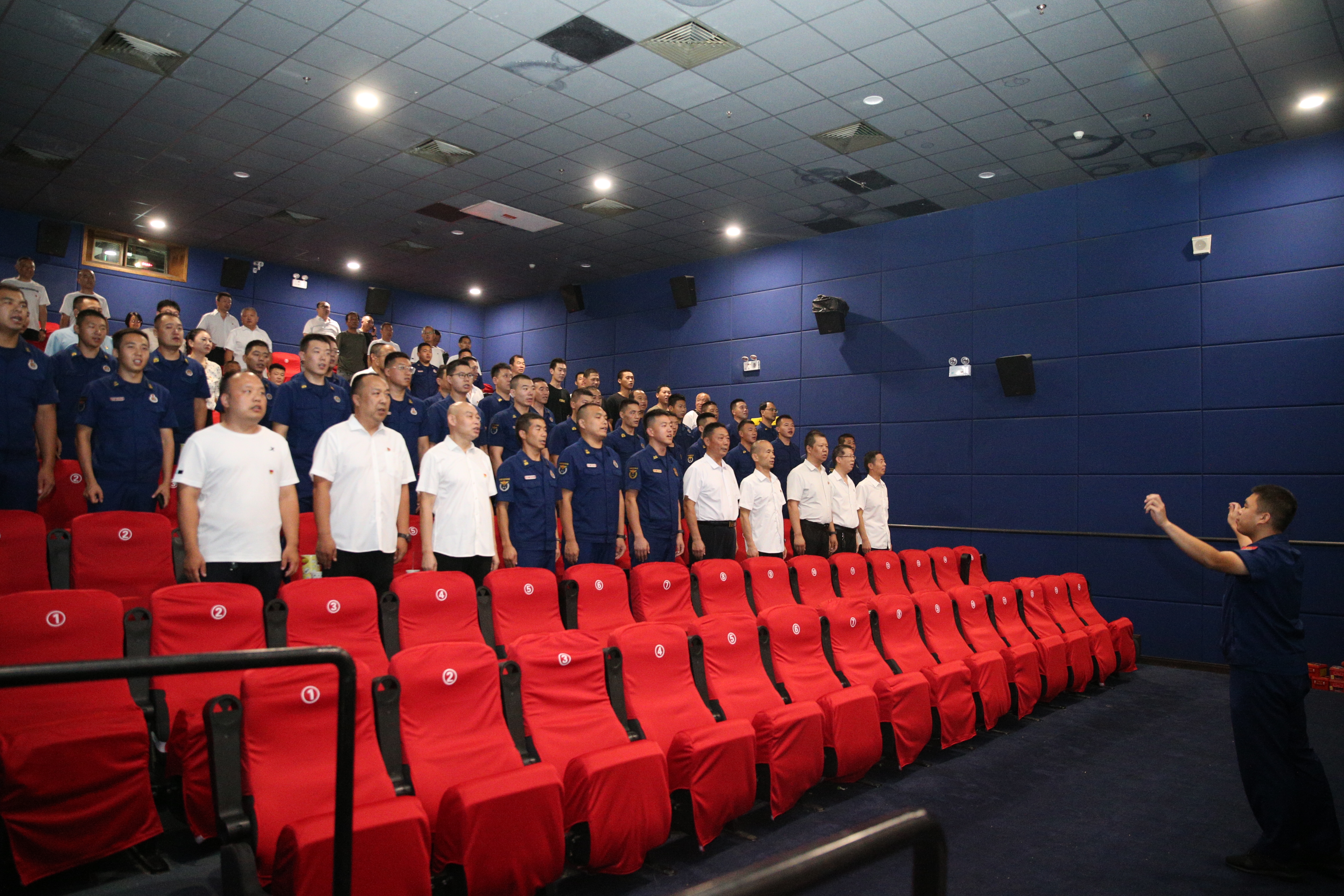 8月1日,运城市市场监管局组织全局转业、复员军人与市消防支队、盐湖区人民武装部联合开展“拥军优属画好同心圆,服务监管共建幸福城”暨庆“八一”红色观影活动,集体观看红色影片《一生交给党》。观影前,全体人员合唱《团结之歌》。