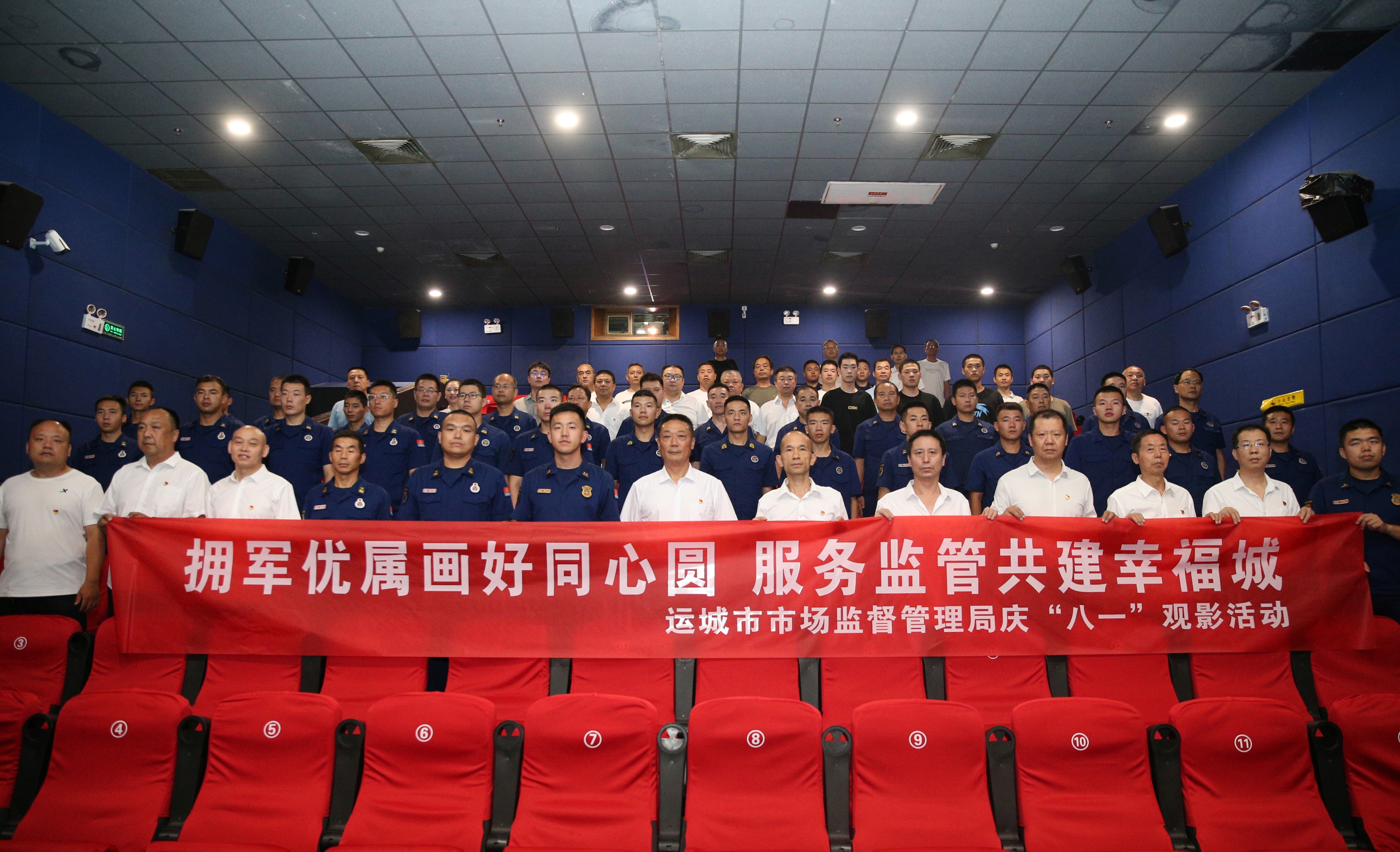运城市市场监管局联合市消防支队和盐湖区人民武装部开展“拥军优属画好同心圆,服务监管共建幸福城”暨庆“八一”红色观影活动
