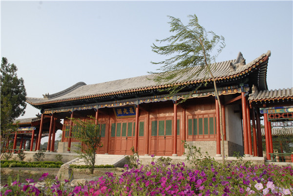 位于御园西北角。面宽五间,进深六架前檐廊,悬山式屋顶。堂内雕有以电视连续剧《三国演义》扮演者刘、关、张三人桃园三结义的蜡像。供桌前摆放着五谷杂粮,南侧立有三结义誓词栏,四周桃花盛开,三人在此拱手祭拜,盟誓为国为民,壮志酬酬,豪情满怀。